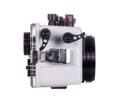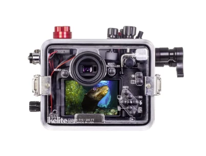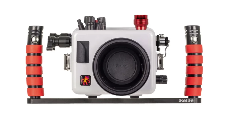 IkeliteLe caisson étanche 200DLM pour Canon EOS R10 est équipé de tout ce dont vous avez besoin pour emmener votre appareil photo sous l'eau, y compris un émetteur TTL à fibre optique, un double plateau avec doubles poignées, un système de détection de fuites sous vide et un jeu de joints toriques de rechange.