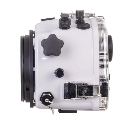 Un caisson étanche complet et robuste pour appareils photo numériques hybrides plein format Canon EOS R6 Mark III. Idéal pour la plongée sous-marine, le snorkeling, le surf, la piscine et toutes les activités aquatiques.
