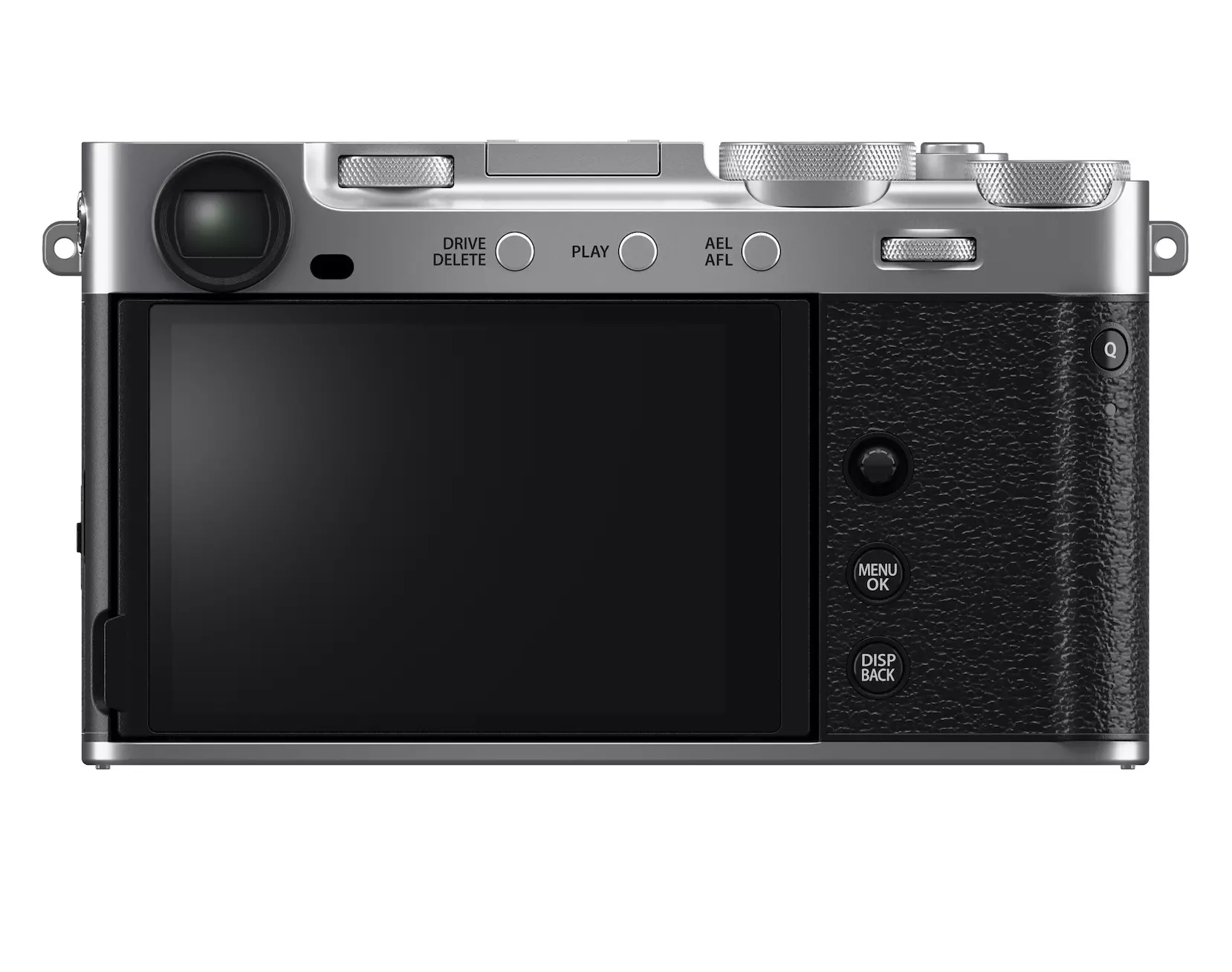 Pour la lecture multimédia, la prévisualisation et la navigation dans les menus, le X-E5 est équipé d'un écran LCD tactile de 3 pouces inclinable sur trois axes et d'une résolution de 1,04 million de points. Décalé sur le côté gauche de sa plaque supérieure en aluminium se trouve le viseur OLED de type télémètre du X-E5. Avec une résolution de 2,36 millions de points, un grossissement de 0,62x et une zone de couverture de 100 %, le viseur électronique offre un aperçu précis de la zone de capture de l'appareil photo. Simulant le viseur d'un reflex analogique, le viseur électronique peut être commuté en mode d'affichage classique, ce qui crée une interface visuelle claire ne conservant que les informations d'exposition. L'écran LCD tactile et le viseur électronique offrent trois modes Surround View qui déterminent si le bord extérieur d'un cadre est souligné, semi-transparent ou entièrement obscurci lors de la prise de vue dans des formats d'image autres que 3:2.