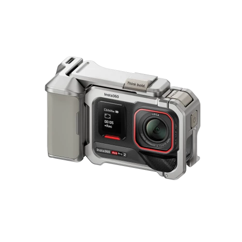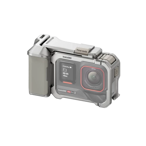 Protégez votre caméra Ace Pro ou Ace Pro 2 tout en améliorant sa prise en main et ses possibilités de fixation grâce au kit de poignée Xplorer d' Insta360 . Ce kit comprend un cadre en aluminium et une poignée latérale droite pour une utilisation plus ergonomique, similaire à celle d'un appareil photo traditionnel, lors de vos déplacements. La caméra s'insère rapidement dans le cadre grâce à la trappe latérale, qui permet un accès facile à la batterie. L'écran et les connecteurs ne sont en aucun cas obstrués.