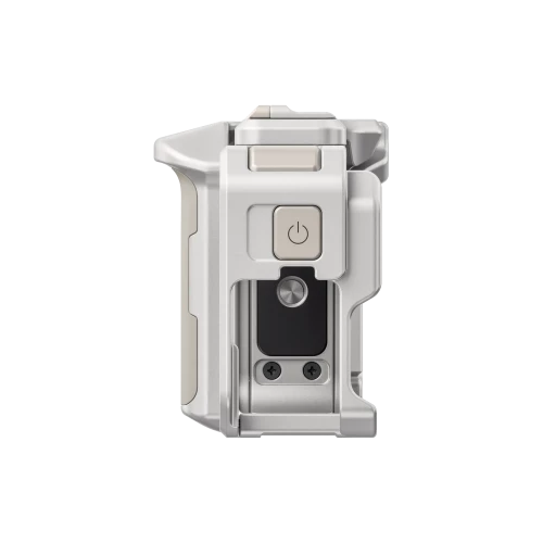Le cadre utilitaire est doté d'un élégant bouton de déclenchement sur le dessus pour démarrer et arrêter facilement l'enregistrement. Un filetage latéral 1/4"-20 et un support de griffe avec capuchon permettent la fixation d'accessoires supplémentaires ; il est également possible de le fixer sur la partie inférieure grâce à la connexion de la caméra.
