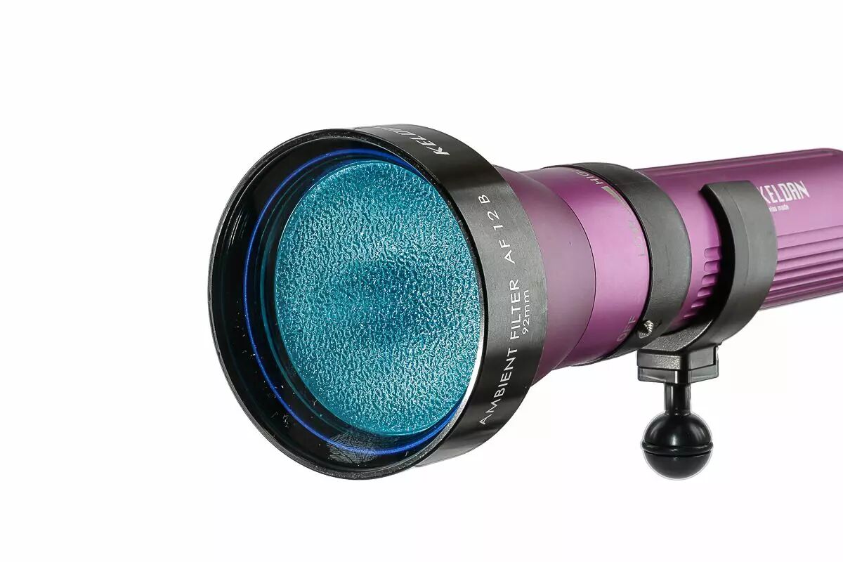 Le filtre ambiant AF 12 B convertit la lumière vidéo blanche en lumière ambiante bleue correspondant à une profondeur d'eau d'environ 12 mètres.