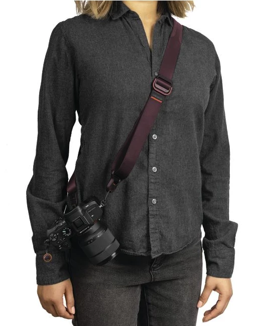 La Slide Lite est polyvalente : vous pouvez la porter en bandoulière, autour du cou ou à l'épaule. D'un côté, la sangle est lisse et glisse sur les vêtements. Retournez-la et une bande en silicone empêche la sangle de glisser de votre épaule. Deux dispositifs de réglage rapide permettent de configurer la Slide Lite pour toutes les activités. Lorsque vous ne prenez pas de photos, serrez votre appareil photo contre votre corps pour le maintenir en place lorsque vous vous déplacez.