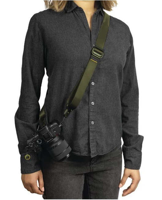 La Slide Lite est polyvalente : vous pouvez la porter en bandoulière, autour du cou ou à l'épaule. D'un côté, la sangle est lisse et glisse sur les vêtements. Retournez-la et une bande en silicone empêche la sangle de glisser de votre épaule. Deux dispositifs de réglage rapide permettent de configurer la Slide Lite pour toutes les activités. Lorsque vous ne prenez pas de photos, serrez votre appareil photo contre votre corps pour le maintenir en place lorsque vous vous déplacez.