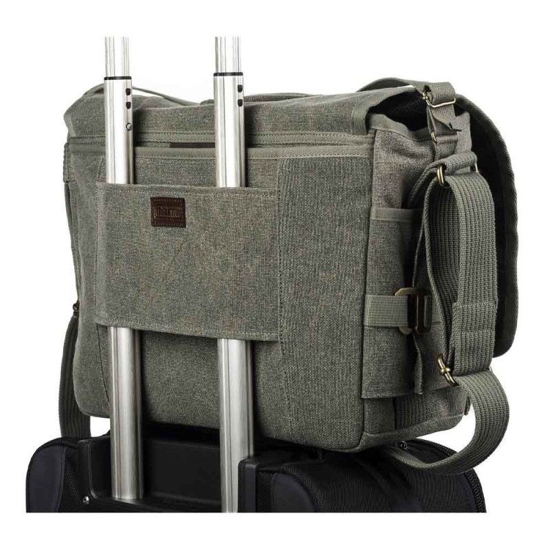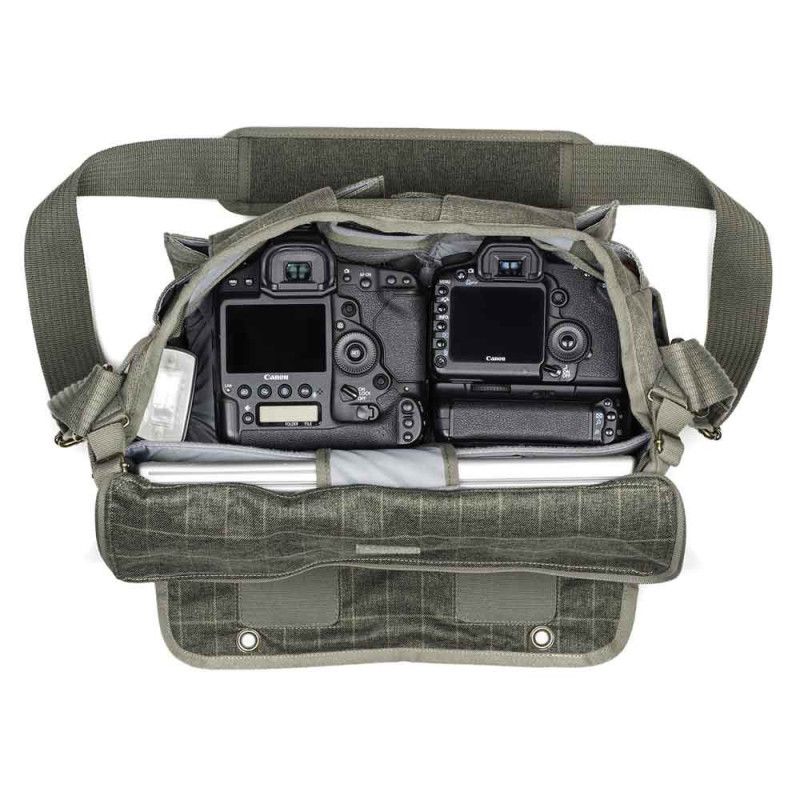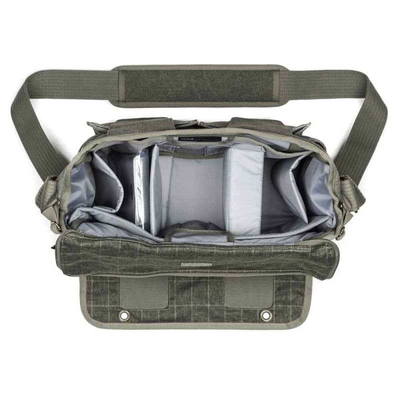 Le nouveau sac d'épaule Think Tank Retrospective V2 avec son design original et vintage offre de nouvelles fonctionnalités. Ce sac est idéal pour transporter un petit boitier reflex avec un objectif, mais peut également convenir pour un sac de tous les jours. Construit avec des matériaux de haute qualité ce sac possède une grande résistance. L’intérieur est recouvert de nylon, les mousquetons sont en métal nickelé et les fermetures sont YKK (anti abrasion). Possédant une large sangle d’épaule avec rembourrage antidérapant, il est confortable à porter. Les cloisons sont amovibles pour une grande liberté de rangement. Des poches sont présentes à l'avant et sur les côtés du sac, et la grande poche arrière peut contenir une tablette 10 pouces.