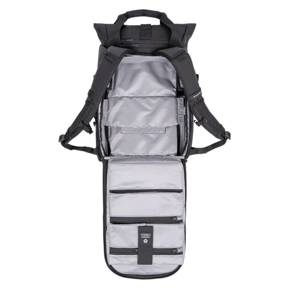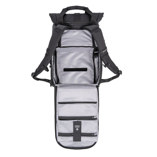 Le Camera Cube (vendu séparément) est accessible par le biais d'ouvertures situées sur le côté et la face arrière du sac. Le Prvke 21L permet également d'accueillir un ordinateur portable d'une taille maximale de 15 pouces et des accessoires ou effets personnels grâce aux différentes poches.